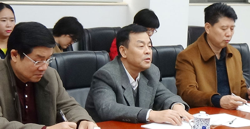 自治區(qū)人大常委會委員、自治區(qū)黨委統(tǒng)戰(zhàn)部原常務(wù)副部長劉長林(左二)提出指導(dǎo)建議,南寧市委常委、統(tǒng)戰(zhàn)部部長趙紅明(左一),南寧市委統(tǒng)戰(zhàn)部副部長、工商聯(lián)黨組書記李忠南(右一)