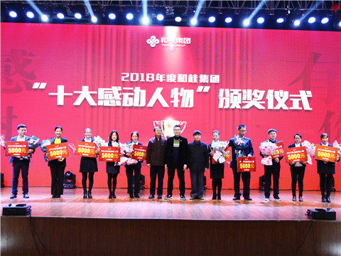 (源生堂執(zhí)行總經(jīng)理助理廖東云(左二)榮獲集團(tuán)“十大感動(dòng)人物”獎(jiǎng))